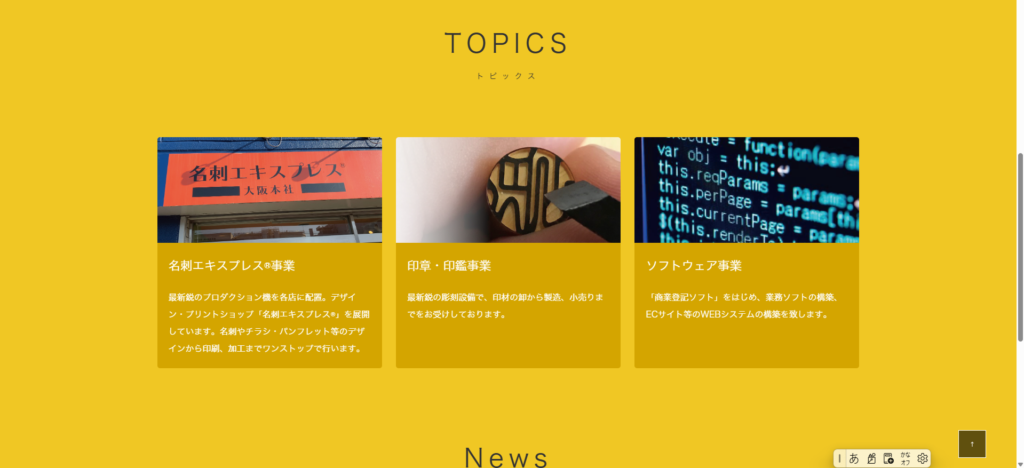 メニューをスタイリッシュに配置し、スライド画像を複数設置できる仕様にしました。